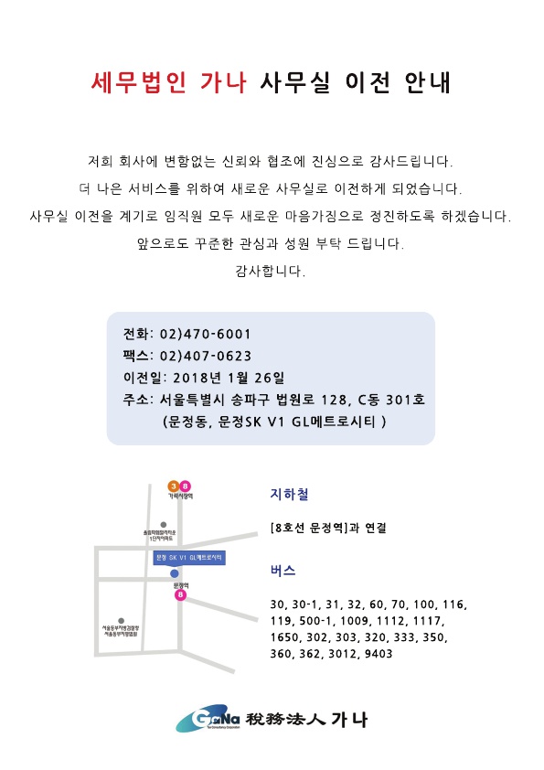 세무법인가나 이전 안내
